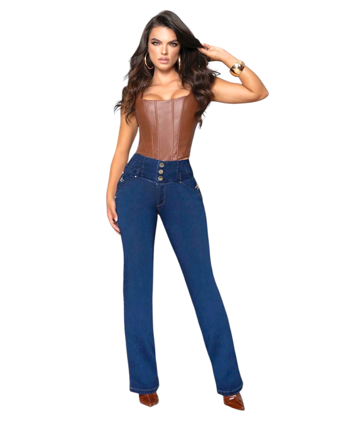 Pantalón corte recto con bolsas traseras, pretina media de 3 botones que aplana tu abdomen, amolda y levanta tus pompas en segundos, ademas que hace un efecto de volumen en pompas y piernas.