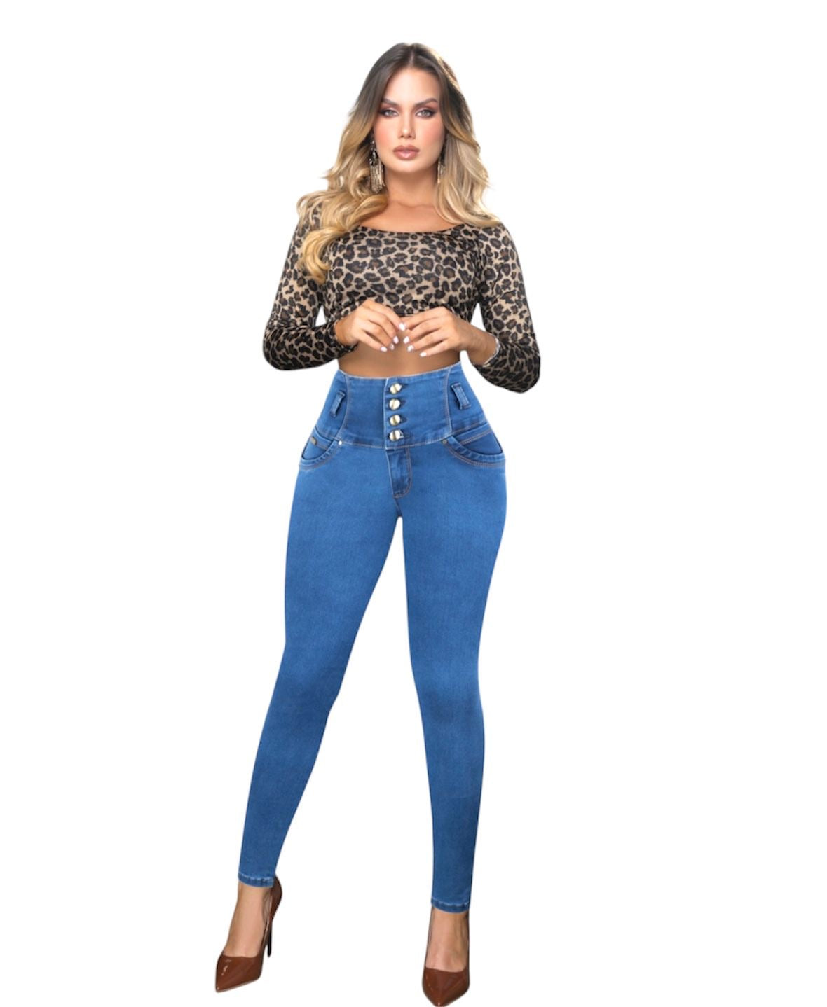 pantalón moldeador tiro alto con pretina de 4 botones, pieza de altura y bolsas traseras, es un jeans que te levanta la pompa, te moldea y te estiliza las piernas en segundos